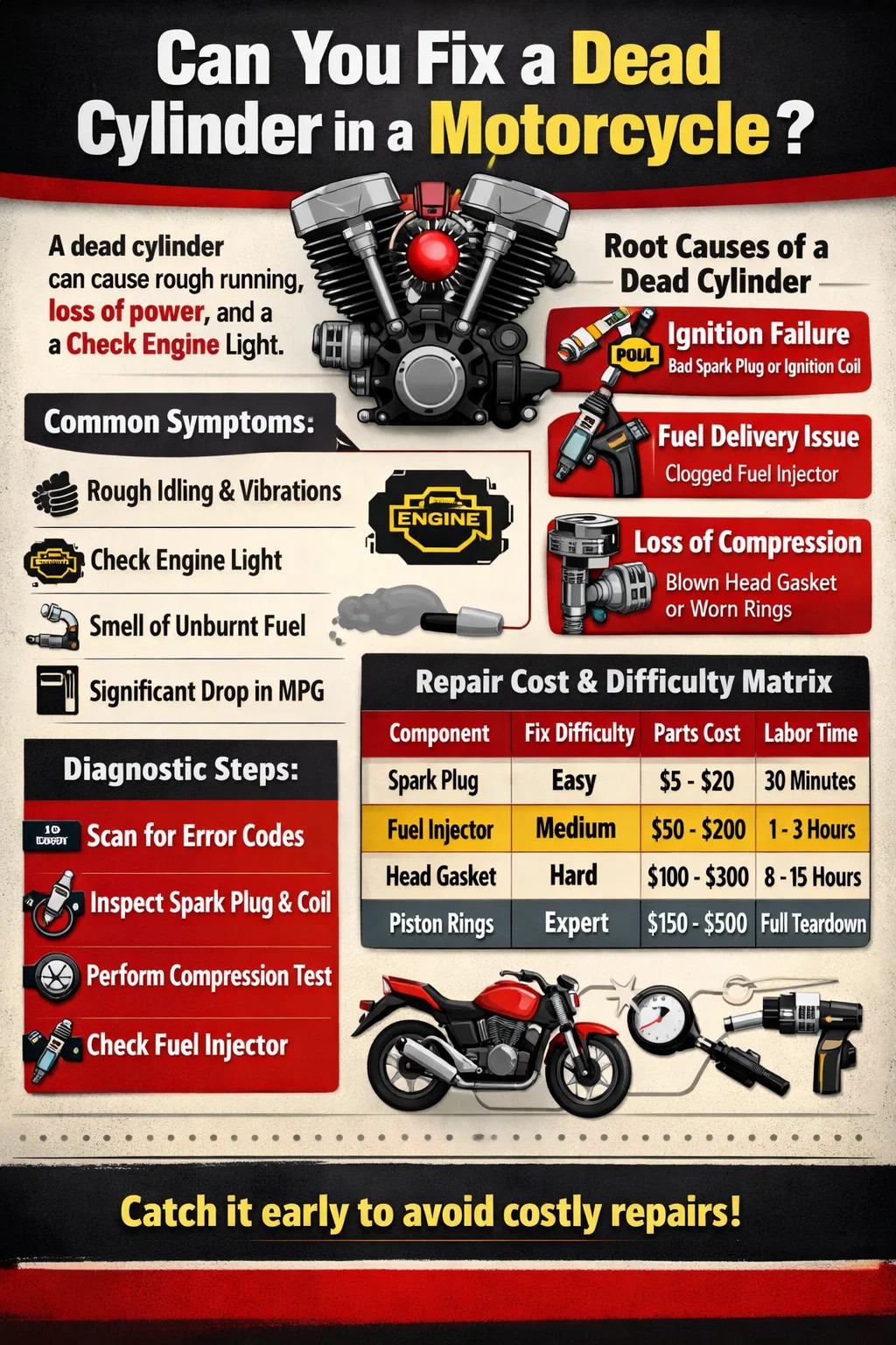 Trước khi đi sâu vào các công cụ, bạn phải xác nhận rằng xi lanh đã thực sự ngừng bắn. Xi lanh chết tạo ra tiếng "nấc" hoặc rung động nhịp nhàng rõ rệt do sự cân bằng của động cơ bị mất đi. Đối với người lái xe trên xi lanh xe máy thiết lập, điều này thường được coi là sự mất điện đáng kể và sự thay đổi trong âm thanh xả, âm thanh có thể bị bóp nghẹt hoặc "cắt".