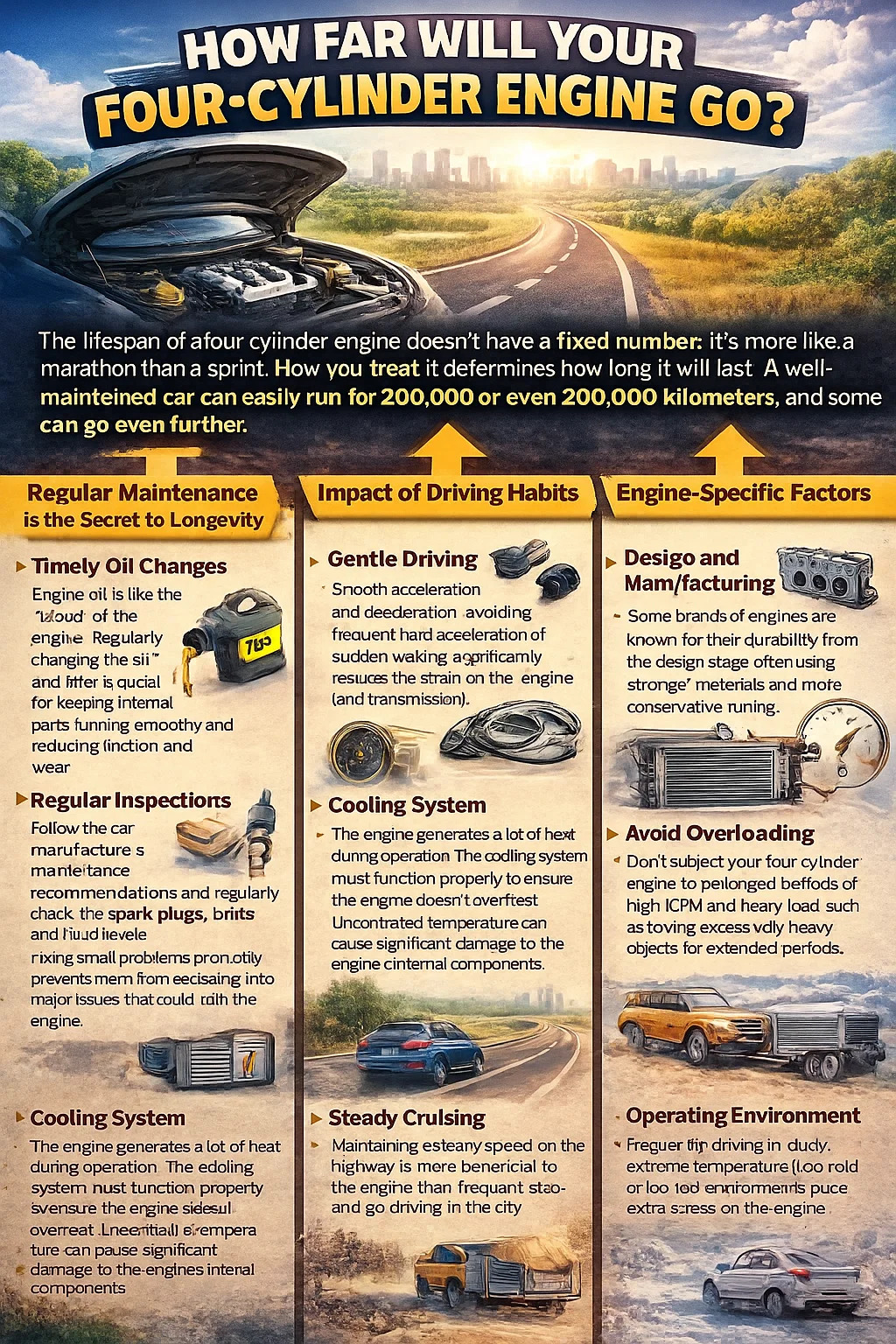 Dưới đây là những yếu tố chính ảnh hưởng đến động cơ 4 xi-lanh của bạn sẽ đi được bao xa: