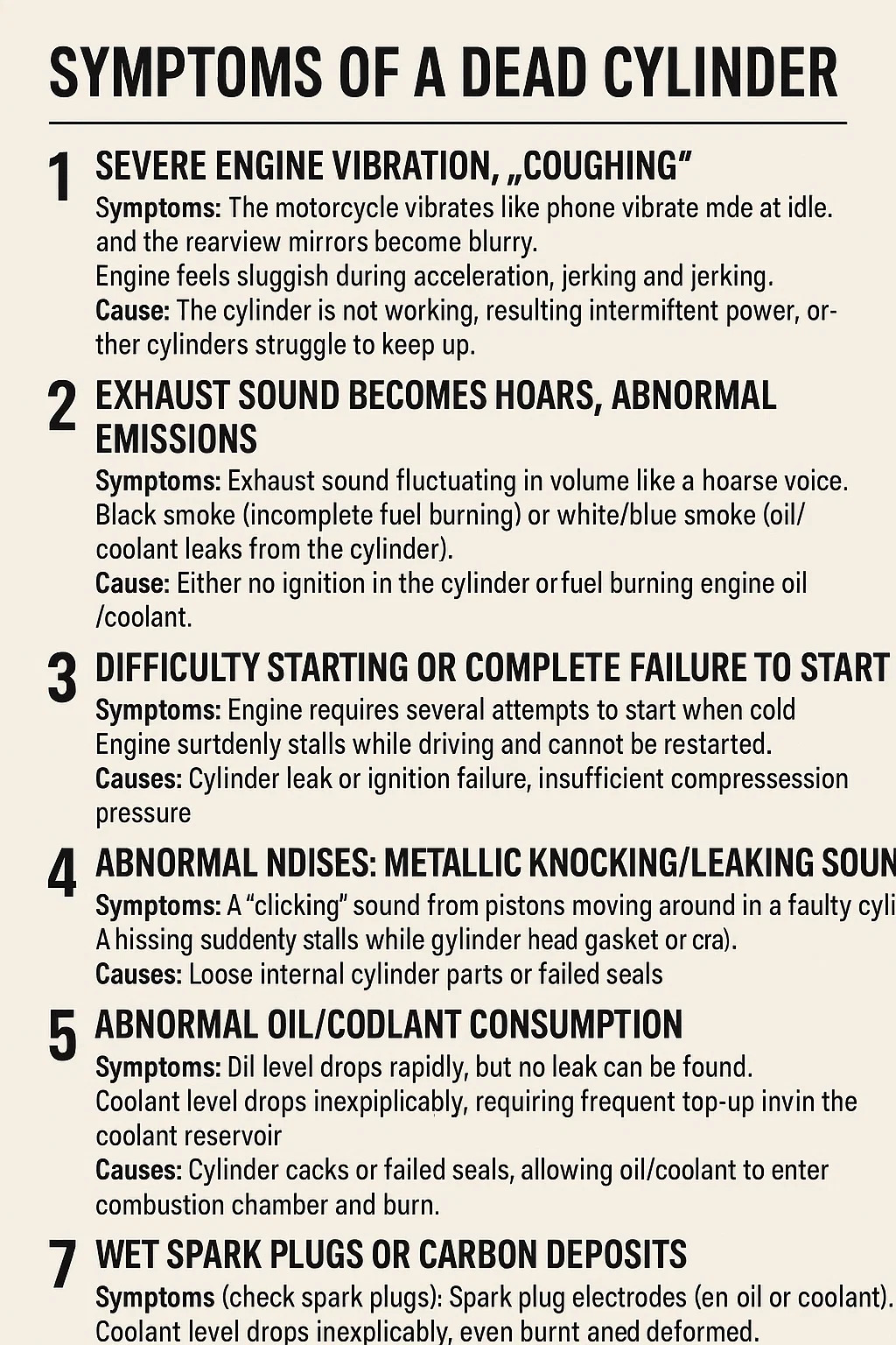 Khi một xi lanh xe máy hỏng hoàn toàn (thường được gọi là “xi lanh chết”) sẽ xuất hiện các triệu chứng rõ ràng sau: