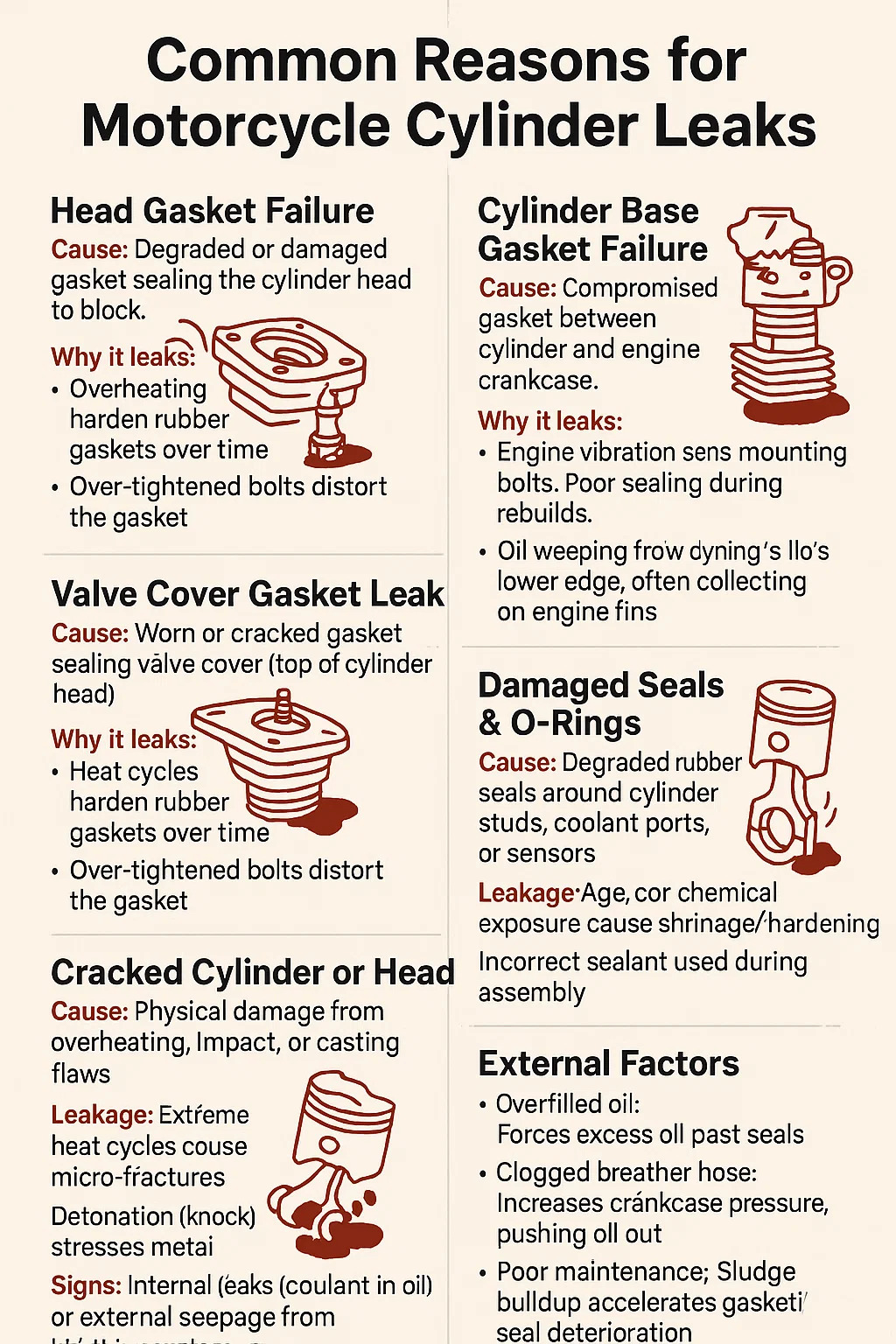 Dưới đây là những lý do phổ biến khiến xi lanh xe máy rò rỉ: